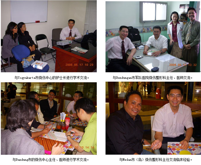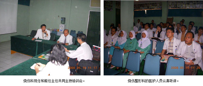五、2008年5月16日,在印尼第二大城市Surabaya市,到該市最大的醫(yī)科大學(xué)附屬教學(xué)醫(yī)院Hasan Sadikin Hospital/Univ. of Padjadjaran 對(duì)燒傷整形科醫(yī)護(hù)人員進(jìn)行培訓(xùn),該院也是一所公立醫(yī)科大學(xué)教學(xué)醫(yī)院,醫(yī)院病床約1100張,開設(shè)內(nèi)、外、婦、兒等臨床科室30多個(gè),其中心血管科、呼吸科、骨科、燒傷整形外科和重癥監(jiān)護(hù)科是重點(diǎn)學(xué)科。培訓(xùn)會(huì)由燒傷整形外科現(xiàn)任主任Dr. Hardisiswo Soedjana 和前任主任Dr. Achmad Koswara主持,參加人員有燒傷整形外科的醫(yī)護(hù)人員約35人。醫(yī)院燒傷科在2005年開始在臨床上應(yīng)用燒傷皮膚再生技術(shù)治療燒傷病人,曾救治成功TBSA=40%燒傷病人,通過這次的培訓(xùn),將有效提高他們的臨床技術(shù)和增強(qiáng)應(yīng)用燒傷皮膚再生技術(shù)救治大面積特重度燒傷病人的信心。