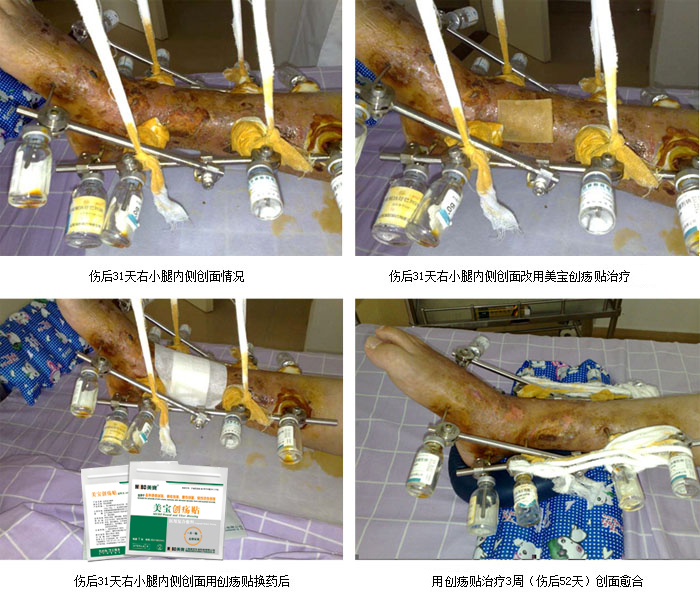 2008年6月12日以來,為使收治四川地震傷員醫(yī)院的醫(yī)護人員應(yīng)用規(guī)范的皮膚原位再生復原技術(shù)處理合并創(chuàng)傷潰瘍的傷員,避免患者的創(chuàng)傷肢體因潰瘍創(chuàng)面處理不當遭受截肢之苦,根據(jù)皮膚原位再生復原技術(shù)發(fā)明人、中國中西醫(yī)結(jié)合學會常務(wù)理事、中國中西醫(yī)結(jié)合學會燒傷專業(yè)委員會名譽主任委員徐榮祥教授指示,中國中西醫(yī)結(jié)合學會燒傷專業(yè)委員會常委、北京美寶燒傷創(chuàng)瘍研究所副所長、臨床總部王洪生主任帶著徐榮祥教授為四川地震災(zāi)區(qū)合并有創(chuàng)傷潰瘍創(chuàng)面?zhèn)麊T愛心捐贈的對皮膚、骨科潰瘍有獨特療效的美寶濕潤燒傷膏、美寶創(chuàng)瘍貼等外用藥物和醫(yī)用復合敷料先后3次到福建醫(yī)科大學附屬廈門第一醫(yī)院杏林分院集中收治四川地震災(zāi)區(qū)傷員的愛心病區(qū)查看傷員,對相關(guān)醫(yī)護人員進行臨床傳、幫、帶,現(xiàn)場示范指導主管醫(yī)生為合并有創(chuàng)傷潰瘍創(chuàng)面的傷員用規(guī)范的皮膚原位再生復原技術(shù)為傷員潰瘍創(chuàng)面換藥,所有合并骨科及皮膚潰瘍的創(chuàng)面運用皮膚原位再生復原技術(shù)并改用美寶創(chuàng)瘍貼或美寶濕潤燒傷膏油紗(MEBO油紗)換藥治療3周后,大部分潰瘍創(chuàng)面愈合或基本愈合,較大的骨外露創(chuàng)面也明顯好轉(zhuǎn),創(chuàng)面正在愈合中,從而避免了因創(chuàng)面處理不當給患者造成截肢之痛。