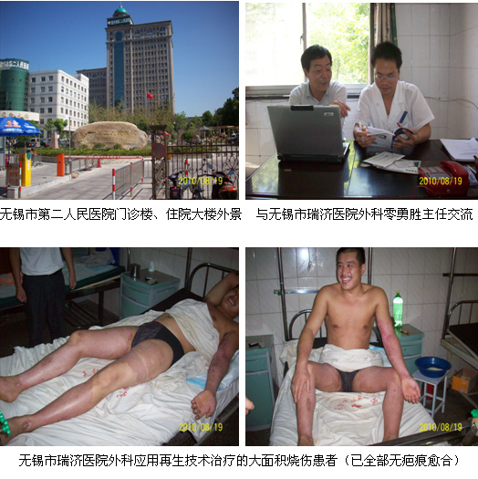 2010年8月16日~20日,中國中西醫(yī)結(jié)合學(xué)會燒傷專業(yè)委員會常委、北京美寶燒傷創(chuàng)瘍研究所臨床部燒傷創(chuàng)瘍專家杜福勤教授與周園園同志一同走訪了無錫市仁德醫(yī)院、宜興市屺亭醫(yī)院、宜興市第二人民醫(yī)院急診科、外一科、外二科、婦產(chǎn)科,無錫市瑞濟醫(yī)院(原宜興市煤礦醫(yī)院)、無錫市福利院。