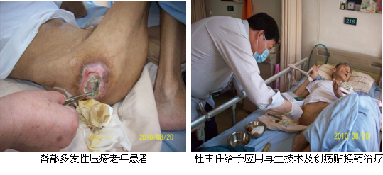 杜主任還深入病區(qū)看望了各醫(yī)院的燒傷、創(chuàng)瘍患者,并親自為電擊傷患者、褥瘡患者換藥和指導(dǎo)用藥治療,受到醫(yī)護人員和患者家屬的歡迎與感謝,達到了深入推廣再生技術(shù)的目的。