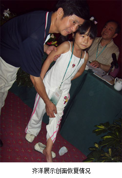汶川地震的一名小患者,因下肢擠壓傷曾被診斷需要截肢治療,吳委員長(zhǎng)得知后非常關(guān)心小患者的傷情,親自看望小患者,當(dāng)?shù)弥』颊邏?mèng)想當(dāng)一位舞蹈演員時(shí),囑咐醫(yī)務(wù)人員要盡量保住小患者的下肢,圓她做舞蹈家的一個(gè)夢(mèng)想。經(jīng)用再生醫(yī)療技術(shù)治療后,保住了小患者的下肢,最終康復(fù)。