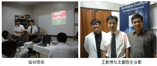 10月15日上午, 王教授來到Jose Reyes Memorial Medical Center醫(yī)療中心,與燒傷科醫(yī)生做了學(xué)術(shù)交流和討論,并做了關(guān)于美寶再生療法臨床應(yīng)用的最新報(bào)告。Dr. Low也對(duì)美寶再生醫(yī)學(xué)治療方法和其他醫(yī)生談了自己的感受。值得一提的是,燒傷科主管醫(yī)生Dr. Sy 將在11月15日到廣州參加為期2周關(guān)于深度和大面積燒傷的培訓(xùn),王教授表示一定會(huì)讓Dr.Sy不虛此行,系統(tǒng)的學(xué)習(xí)大面積和深度創(chuàng)面的治療方法。