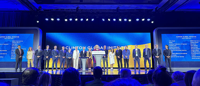 當?shù)貢r間2023年9月19日,美寶集團董事局主席徐鵬作為2022 CGI倡議“歐洲修復計劃”發(fā)起人應邀登上克林頓基金會CGI大會主會場講臺,與希拉里·克林頓及其他倡議發(fā)起者包括Orlando Bloom 和 Liev Schreiber一起見證新的CGI國際救助行動網(wǎng)絡(luò)成立。