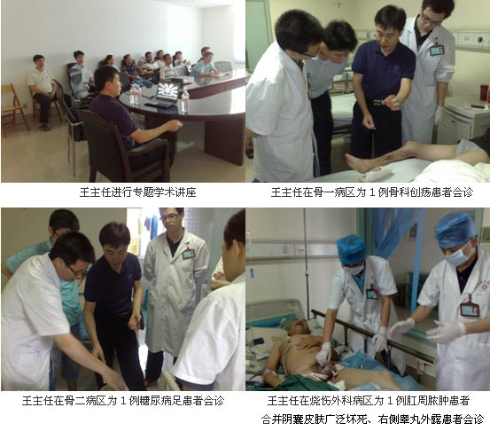 5月28日下午15時,在賀州市中醫(yī)醫(yī)院門診樓6樓小會議室,王主任以“再生療法在難愈性創(chuàng)瘍創(chuàng)面治療新進(jìn)展”為題的進(jìn)行了學(xué)術(shù)講座。該醫(yī)院副院長兼骨科主任張偉宏親自召集該院外科系統(tǒng)的相關(guān)醫(yī)生參加學(xué)術(shù)交流,醫(yī)務(wù)科長植華主持了會議。王主任首先向大家介紹了人體再生復(fù)原科學(xué)是走在人類生命科學(xué)最前沿的研究成果,其技術(shù)核心是通過培養(yǎng)人體的體細(xì)胞轉(zhuǎn)變?yōu)楦杉?xì)胞,再生克隆新的組織器官,這也是大家在臨床應(yīng)用再生醫(yī)療技術(shù)治療燒傷時的技術(shù)核心;王主任還結(jié)合了大量的臨床病例圖片,主要針對各類難愈性創(chuàng)傷、潰瘍創(chuàng)面的規(guī)范化處理方法與技巧、注意事項等進(jìn)行了細(xì)致地講解,特別介紹了糖尿病足的臨床治療規(guī)范和要點。學(xué)術(shù)講座持續(xù)到當(dāng)日下午17時30分才結(jié)束,講座結(jié)束后,該院院長助理兼外一科主任李碧錦與骨科、燒傷外科相關(guān)的專家和主管醫(yī)生又邀請王主任深入到骨一、骨二病區(qū)和燒傷外科病區(qū)為糖尿病足、創(chuàng)瘍、肛周膿腫合并陰囊皮膚廣泛壞死右側(cè)睪丸外露、中毒性休克等難治性創(chuàng)面的患者進(jìn)行了會診。在會診時,王主任親自為重病患者進(jìn)行換藥,并向醫(yī)務(wù)人員示范換藥的技巧講解換藥時的注意事項,受到了大家的一致好評。