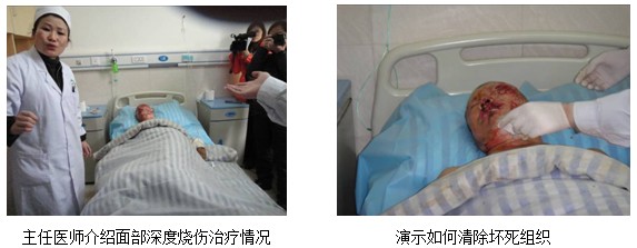 隨后,程院長(zhǎng)帶領(lǐng)Jayaraman教授進(jìn)行了病房查房活動(dòng)。在查房的過程中,醫(yī)院主任醫(yī)師詳細(xì)介紹了應(yīng)用燒傷再生療法如何治療深度創(chuàng)面,包括開創(chuàng)引流、耕耘減張、壞死組織薄化、壞死組織液化排除等技術(shù),深深的吸引了Jayaraman教授。Jayaraman教授說:“我們的燒傷中心對(duì)于深二度以上的創(chuàng)面,一般都采用削痂植皮技術(shù),但今天我親眼看見了一種對(duì)壞死痂皮處理的一套新技術(shù)---創(chuàng)面無損傷、病人無痛苦、壞死組織自動(dòng)液化排除, 好技術(shù)、好技術(shù)?!?/FONT>