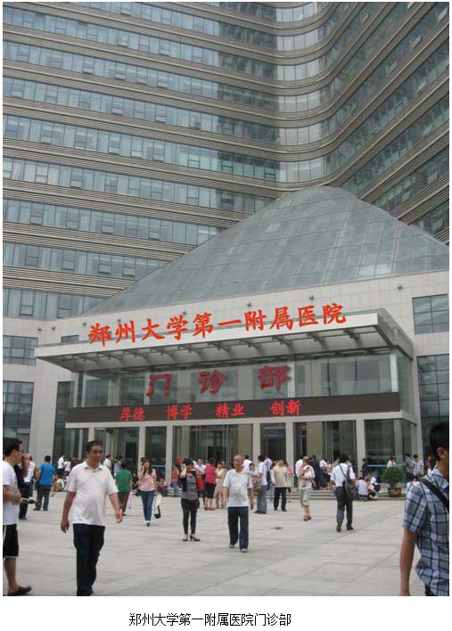鄭州大學(xué)第一附屬醫(yī)院是河南最大的教學(xué)醫(yī)院。全院醫(yī)教人員6700人,病床有6000余張。在2011年全國(guó)三甲醫(yī)院床位評(píng)比中,鄭大一附院居全國(guó)之首。是治療、教學(xué)、科研一體化的一所多功能化醫(yī)院。在河南醫(yī)療技術(shù)教學(xué)科研中稱為老大。