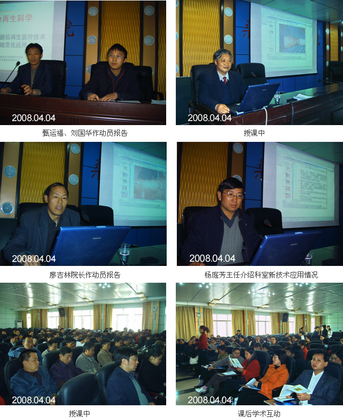 2008年4月4日下午2點(diǎn)30分,清明節(jié)放假的第一天,由張家界市桑植縣衛(wèi)生局、衛(wèi)生監(jiān)督所、桑植縣中醫(yī)院承辦的“燒傷醫(yī)學(xué)新進(jìn)展學(xué)習(xí)班”在桑植縣中醫(yī)院四樓會(huì)議室舉行。來自桑植縣人民醫(yī)院、桑植縣中醫(yī)院、桑植縣各鄉(xiāng)鎮(zhèn)醫(yī)生共300多人在這里參加了學(xué)習(xí)班。桑植縣人民衛(wèi)生監(jiān)督所所長甄運(yùn)福、桑植縣衛(wèi)生局副局長黃宏光、科長劉國華、桑植縣人民醫(yī)院廖院長、主持會(huì)議并發(fā)表了熱情洋溢的講話,他在講話中對(duì)與會(huì)的各位領(lǐng)導(dǎo)、專家和與會(huì)學(xué)員表示熱烈歡迎和衷心感謝,對(duì)我國著名生命科學(xué)家徐榮祥教授近年來在生命再生科學(xué)、人類組織器官克隆、燒傷再生醫(yī)學(xué)等領(lǐng)域所取得的重大臨床和實(shí)驗(yàn)研究成果給予了高度評(píng)價(jià),對(duì)能在百忙之中抽出時(shí)候來到山區(qū)給學(xué)員講課的金教授表示了萬分的感謝。