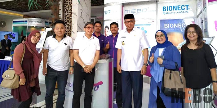 第二天,第23屆印尼創(chuàng)面、整形與美容修復(fù)大會正式開幕,美寶國際與當(dāng)?shù)睾献骰锇镃ombiphar共同受邀參加了開幕式。期間印尼專家Dr. Donna Savitry在大會上正式倡議各醫(yī)護(hù)人員更多的嘗試使用再生醫(yī)學(xué)技術(shù),從基層醫(yī)院做起,更好的造福當(dāng)?shù)孛癖?。上?0點,前來會場剪彩的亞奇省省長專程到訪Combiphar和美寶的展位,詢問再生醫(yī)學(xué)的使用情況,并合影留戀。