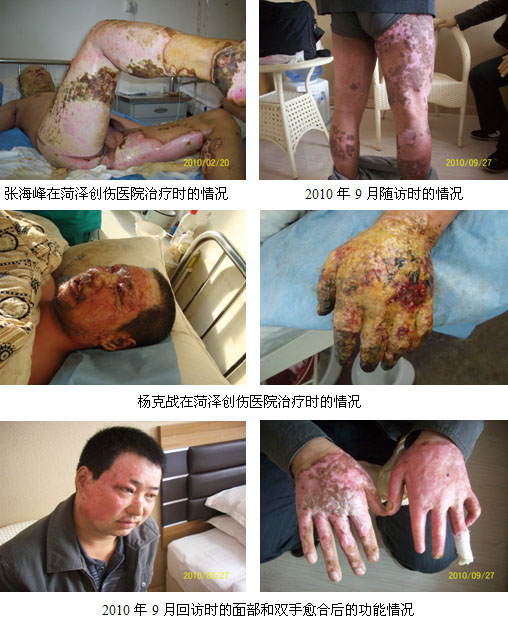 2010年9月26日~28日,中國中西醫(yī)結(jié)合學會燒傷專業(yè)委員會常委、北京美寶燒傷創(chuàng)瘍研究所臨床部主任杜福勤教授走訪了安徽阜陽市臨泉縣在“2.6燒傷事件”中的楊克戰(zhàn)、張海峰2位受傷者,了解其出院后的愈后情況。