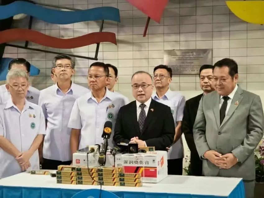 10月2日下午,受中國駐泰國大使韓志強的委托,公使吳志武在廊曼國際機場舉行了美寶濕潤燒傷藥膏的交接儀式。泰國衛(wèi)生部長頌薩、司法部長塔威親臨現(xiàn)場,共同見證了這一時刻,并向中方表達了深深的感激之情。