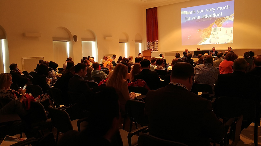 10月18日上午會議在圣托里尼島Petros M. Nomikos會議中心準時拉開帷幕, 會議組委會介紹了與會嘉賓并致謝了徐榮祥基金會。