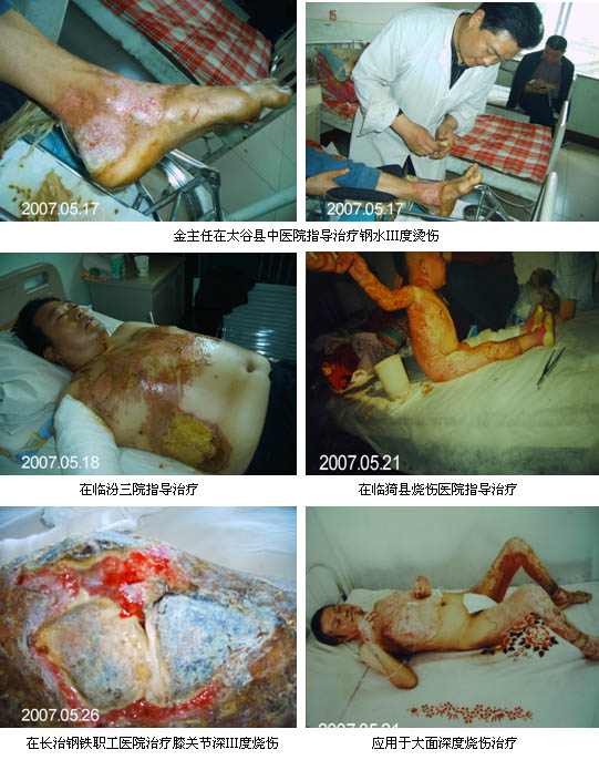2007年5月~6月間,中國中西醫(yī)結(jié)合學會燒傷專業(yè)委員會委員、北京燒傷創(chuàng)瘍研究所副所長、臨床部金黨軍主任為傳播燒傷皮膚再生醫(yī)療技術(shù),造福基層百姓一直奔波于太谷縣中醫(yī)院、臨猗縣燒傷醫(yī)院、臨汾三院、長治鋼鐵職工醫(yī)院等基層醫(yī)院。再生科學是我國著名生命科學家徐榮祥教授近年來創(chuàng)立的一門新的生命科學,燒傷皮膚再生醫(yī)療技術(shù)則是最早應用于臨床的再生科學技術(shù),它的誕生給燒傷治療帶來了革命性變革。眾所周知,中、大面積燒傷是臨床比較常見的一種治療難度大、風險高、費用貴、并常伴發(fā)深度燒傷,導致愈后疤痕增生明顯,留有不同程度的功能障礙。而由徐榮祥教授發(fā)明的燒傷皮膚原位再生技術(shù)為廣大燒傷病人提供了一條低風險、低費用和少(無)疤痕的新的治療途徑。同時這種新技術(shù)使用簡便、不需要特殊醫(yī)療設備,治愈率高,大大降低了基層醫(yī)院治療風險和技術(shù)推廣的難度。由于這項技術(shù)的發(fā)明,廣大百姓得以痛苦少、費用低的治療燒傷創(chuàng)瘍。