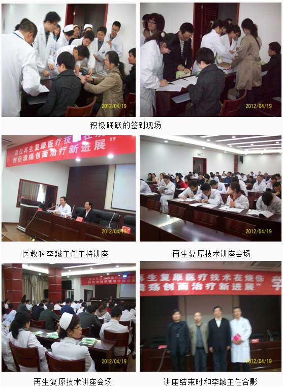 2012年4月19日中國中西醫(yī)結(jié)合學(xué)會燒傷專業(yè)委員會委員、北京美寶燒傷創(chuàng)瘍研究所臨床部研究員、燒傷創(chuàng)瘍專家杜福勤主任和學(xué)會駐江蘇省辦事處劉恒主任應(yīng)姜堰市中醫(yī)院醫(yī)教科李鋮科長之邀,為姜堰市中醫(yī)院作“再生復(fù)原技術(shù)在燒傷創(chuàng)傷潰瘍創(chuàng)面臨床治療新進展”講座,杜主任利用大量臨床實踐資料介紹了再生復(fù)原科學(xué)創(chuàng)立者,再生復(fù)原技術(shù)發(fā)明人徐榮祥教授研究創(chuàng)立和實踐的歷程,介紹了國內(nèi)外臨床實踐、推廣情況,重點講解了再生復(fù)原技術(shù)在燒傷創(chuàng)傷潰瘍創(chuàng)面的清創(chuàng)換藥技術(shù),介紹了再生復(fù)原技術(shù)專用產(chǎn)品MEBO燒傷膏、美寶創(chuàng)瘍貼、美寶疤痕軟膏的功能,臨床療效、臨床效果、注意事項及不良反應(yīng)。同時介紹了創(chuàng)瘍貼的產(chǎn)品特點;1、特有的框架劑型,2、多重的生物功能,3、良好的止痛作用,4、可靠的臨床效果,5、獨有的專利產(chǎn)品。接著又介紹了美寶疤痕軟膏和微波超聲透入儀治療疤痕的資料,深受入會醫(yī)護人員的歡迎,起到了深入推廣再生復(fù)原技術(shù)地目的,造福姜堰市燒傷創(chuàng)瘍患者,福祉一方百姓。