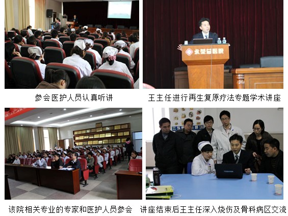 2011年11月8日下午3時(shí),中國(guó)中西醫(yī)結(jié)合學(xué)會(huì)燒傷專(zhuān)業(yè)委員會(huì)常委兼秘書(shū)、《中國(guó)燒傷創(chuàng)瘍雜志》副總編輯、北京美寶燒傷創(chuàng)瘍研究所副所長(zhǎng)、臨床研究部主任王洪生研究員應(yīng)邀來(lái)到重慶永榮礦業(yè)有限公司總醫(yī)院進(jìn)行“再生復(fù)原療法在燒傷及難愈性創(chuàng)面臨床規(guī)范化應(yīng)用及新進(jìn)展”臨床專(zhuān)題學(xué)術(shù)講座。