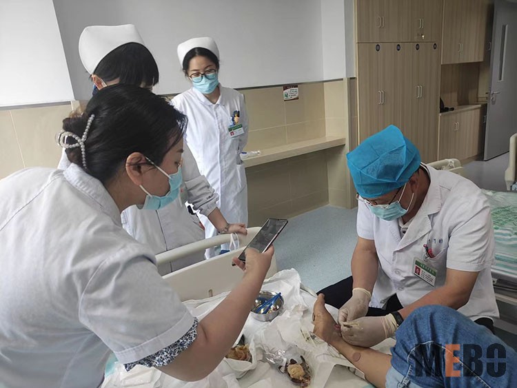 6月21日,應(yīng)普寧市人民醫(yī)院和二院邀請,北京榮祥再生醫(yī)學(xué)研究所副所長、中國中西醫(yī)結(jié)合學(xué)會燒傷專業(yè)委員會常務(wù)委員、《中國燒傷創(chuàng)瘍雜志》副總編輯、應(yīng)用燒傷創(chuàng)瘍再生醫(yī)療技術(shù)治療糖尿病足領(lǐng)域?qū)<彝鹾樯魅畏謩e會診了糖尿病足和壓瘡病人,并親自示范清創(chuàng)手術(shù),講解診療流程,再生醫(yī)療技術(shù)規(guī)范換藥及注意事項等,得到科里主任和醫(yī)生護(hù)士以及患者家屬的高度認(rèn)可,為醫(yī)生增加了信心,為打造創(chuàng)面修復(fù)科打下了基礎(chǔ)!