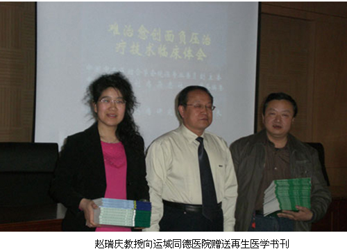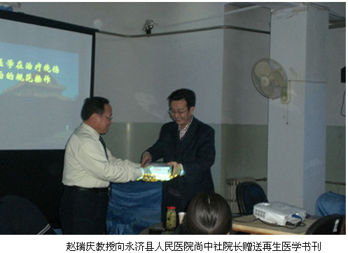 另外,趙瑞慶教授先后在沒有應用過原位再生醫(yī)療技術的永濟市人民醫(yī)院、聞喜縣創(chuàng)傷醫(yī)院、運城皮膚病醫(yī)院、運城市同德糖尿病醫(yī)院進行了再生醫(yī)療技術的臨床應用培訓共八期,培訓人員達394人,贈送再生醫(yī)學資料達400余冊,受到了當地衛(wèi)生局領導、縣醫(yī)院的高度稱贊。