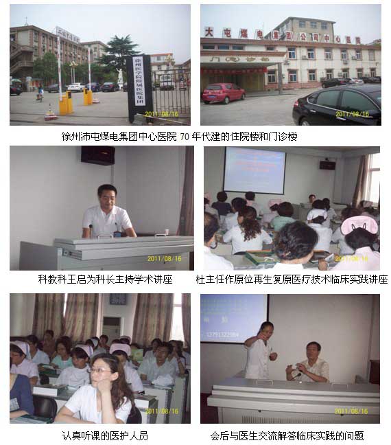 2011年8月16日,應(yīng)徐州沛屯煤電集團(tuán)中心醫(yī)院科教科王啟為科長(zhǎng)的邀請(qǐng),中國(guó)中西醫(yī)結(jié)合學(xué)會(huì)燒傷專業(yè)委員會(huì)委員、北京美寶燒傷創(chuàng)瘍研究所臨床部杜福勤主任和學(xué)會(huì)駐南京辦事處劉恒主任、周銀梅一起在該院舉辦國(guó)家中醫(yī)藥管理局醫(yī)學(xué)繼教項(xiàng)目—再生復(fù)原醫(yī)療技術(shù)學(xué)術(shù)講座。