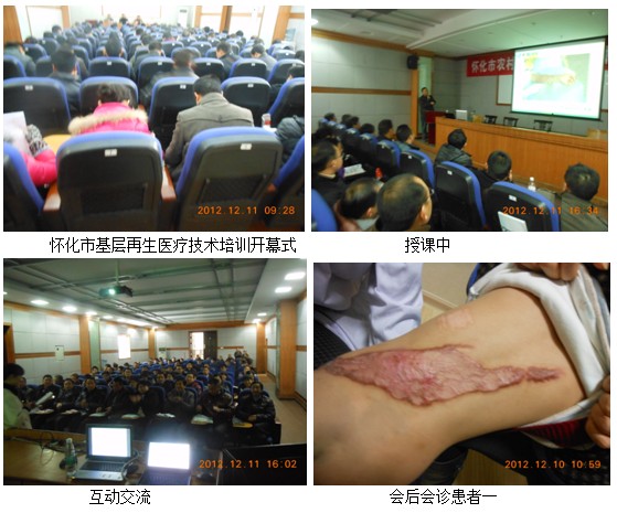 12月11日由衛(wèi)生局組織的懷化地區(qū)鄉(xiāng)鎮(zhèn)衛(wèi)生院,社區(qū)醫(yī)院的衛(wèi)生適應(yīng)技術(shù)培訓(xùn)在懷化第一人民醫(yī)院順利舉行,中國(guó)中西醫(yī)結(jié)合學(xué)會(huì)燒傷專業(yè)委員會(huì)常委、北京燒傷創(chuàng)瘍研究所副所長(zhǎng)、《中國(guó)燒傷創(chuàng)瘍雜志》常委編委金黨軍教授,再次來(lái)到懷化。在這次培訓(xùn)會(huì)上金教授就“人體再生復(fù)原療法在燒傷及難治性創(chuàng)傷、潰瘍創(chuàng)面治療臨床規(guī)范化應(yīng)用及新進(jìn)展”進(jìn)行了專題講座。金教授結(jié)合了大量的臨床病例圖片,針對(duì)不同深度的燒傷創(chuàng)面及各類難愈性創(chuàng)傷、潰瘍創(chuàng)面的規(guī)范化處理方法與技巧、注意事項(xiàng)及燒傷疤痕康復(fù)治療的等進(jìn)行了細(xì)致講解。在會(huì)的醫(yī)務(wù)員看到大量真實(shí)的臨床病例資料圖片后,都被再生醫(yī)療技術(shù)良好的治療效果所震撼與折服。此次講座深受會(huì)者的歡迎,再生復(fù)原技術(shù)為醫(yī)護(hù)人員在臨床上提供了一條新的治療思路,開闊了醫(yī)護(hù)工作者的視野,增長(zhǎng)了新的知識(shí)。金教授通過(guò)現(xiàn)場(chǎng)對(duì)患者的燒傷創(chuàng)面的會(huì)診、臨床指導(dǎo),更清楚直觀的解決了臨床的實(shí)際問(wèn)題。