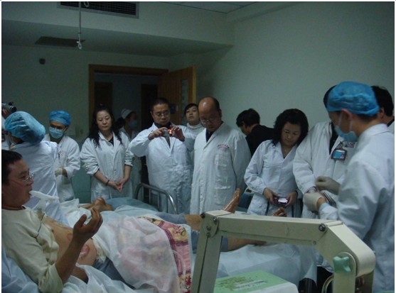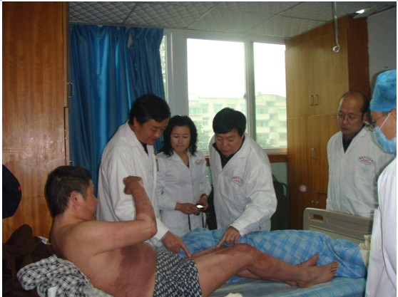 學(xué)術(shù)交流后在付子俊主任陪同下大家開始參觀病房,薛宏斌主任一行進(jìn)入整潔規(guī)范的病房,看到所有病人在再生醫(yī)療技術(shù)治療下非常安靜并表情輕松,大面積特重度燒傷患者病情非常穩(wěn)定,所有治療病人的創(chuàng)面新鮮而富有活力,沒有一例創(chuàng)面發(fā)生感染現(xiàn)象。聽著付子俊主任的對每位患者治療的詳細(xì)介紹,目睹再生醫(yī)療技術(shù)在臨床治療的神奇療效令薛宏斌主任一行驚奇不已,他們不斷請付子俊主任結(jié)合患者情況詳細(xì)介紹關(guān)于再生醫(yī)療技術(shù)臨床應(yīng)用的技術(shù)特點(diǎn)和規(guī)范應(yīng)用等相關(guān)問題,付子俊主任毫無保留的一一做了講解。通過實(shí)地臨床觀摩學(xué)習(xí),薛宏斌主任一行感觸頗深,對再生醫(yī)療技術(shù)從思想上有了一個質(zhì)的飛躍。