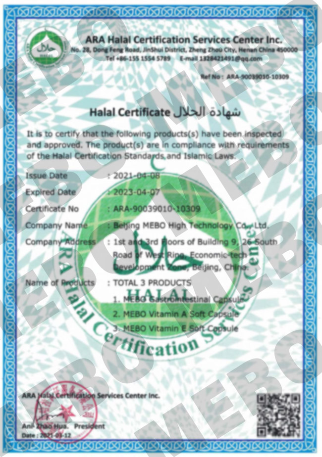 2021年3月12日,美寶集團(tuán)旗下北京美寶高科技有限責(zé)任公司(簡稱北京美寶高科)順利通過ARA認(rèn)證機(jī)構(gòu)的Halal認(rèn)證。這是北京美寶高科技有限責(zé)任公司首次升級(jí)完成兩年一次的Halal認(rèn)證,標(biāo)志著北京美寶高科技有限責(zé)任公司生產(chǎn)的美寶牌胃腸膠囊能夠在世界上大多數(shù)伊斯蘭國家進(jìn)行銷售。