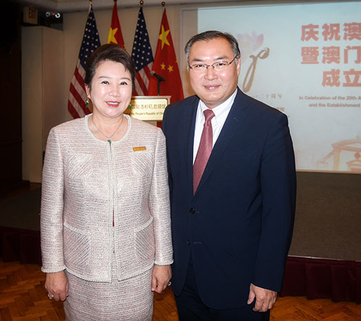 2019年12月18日晚,慶祝澳門回歸祖國暨澳門特別行政區(qū)成立二十周年招待會(huì)和圖片展在中國駐洛杉磯總領(lǐng)館舉辦,美寶集團(tuán)董事局李俐受邀和南加州政府官員以及新老僑胞、港澳同胞和各類機(jī)構(gòu)及國際友人代表等兩百多人一道出席。招待會(huì)由副總領(lǐng)事施遠(yuǎn)強(qiáng)主持。