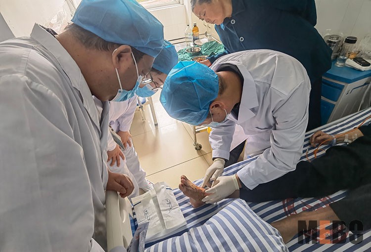 2021年10月21日,北京榮祥再生醫(yī)學(xué)研究所副所長(zhǎng)、《中國(guó)燒傷創(chuàng)瘍雜志》編委金黨軍教授應(yīng)邀來(lái)到遼寧省健康產(chǎn)業(yè)集團(tuán)阜新礦總醫(yī)院手足外科進(jìn)行再生醫(yī)療技術(shù)交流及現(xiàn)場(chǎng)觀摩指導(dǎo),參加本次交流的還有阜新市中心醫(yī)院及阜蒙縣人民醫(yī)院的專家團(tuán)隊(duì),金教授與大家就糖尿病足患者的治療情況及創(chuàng)面科室的發(fā)展情況進(jìn)行詳細(xì)探討,并進(jìn)行了現(xiàn)場(chǎng)實(shí)際換藥操作,受到家屬和全體醫(yī)護(hù)人員的好評(píng)與認(rèn)可。