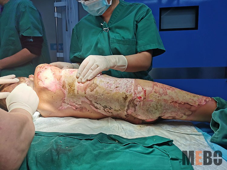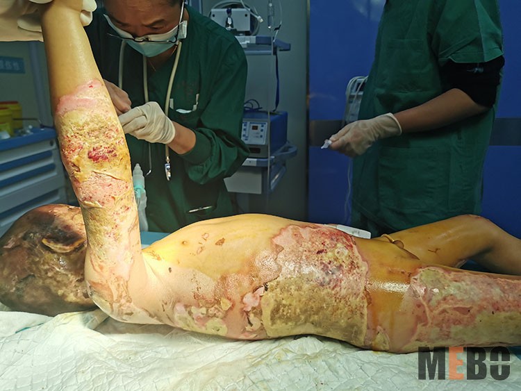 2021年10月21日,貴陽(yáng)市第五人民醫(yī)院董建軍主任應(yīng)黔西林東醫(yī)院的邀請(qǐng),到該院會(huì)診一小兒大面積重度燒傷病人,并進(jìn)行清創(chuàng)治療,另對(duì)一大面積燒傷病人殘余創(chuàng)面進(jìn)行微粒皮種植術(shù),并指導(dǎo)手術(shù)醫(yī)生取皮,制皮,種植。