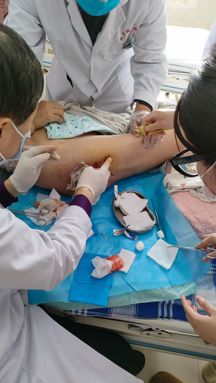 2023年2月15曰,巫溪縣渝溪醫(yī)趙勇教授受奉節(jié)縣普惠醫(yī)院王華麗院長的邀請(qǐng),來到醫(yī)院對(duì)2名嚴(yán)重?zé)齻∪诉M(jìn)行診治并開展學(xué)術(shù)交流活動(dòng),首先對(duì)一名深度燒傷的病人進(jìn)行了清創(chuàng)治療,對(duì)另一名大面積深度燒傷的病人進(jìn)行了再生醫(yī)療技術(shù)規(guī)范化換藥處理,最后在科室開展了再生醫(yī)療技術(shù)規(guī)范化應(yīng)用交流。