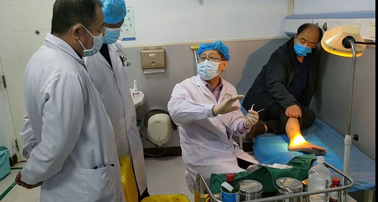 2月13日, 北京榮祥再生醫(yī)學(xué)研究所副所長、中國中西醫(yī)結(jié)合學(xué)會(huì)燒傷專業(yè)委員會(huì)常務(wù)委員、《中國燒傷創(chuàng)瘍雜志》副總編輯、應(yīng)用燒傷創(chuàng)瘍?cè)偕t(yī)療技術(shù)治療糖尿病足領(lǐng)域?qū)<彝鹾樯魅问苎巴綎|省淄博市高青縣人民醫(yī)院,與創(chuàng)傷中心劉主任及其團(tuán)隊(duì)開展再生醫(yī)療技術(shù)在壓力性損傷的療效機(jī)理與處理要點(diǎn)專題講座,并結(jié)合住院病例進(jìn)行了現(xiàn)場(chǎng)教學(xué),受到大家一致好評(píng)。