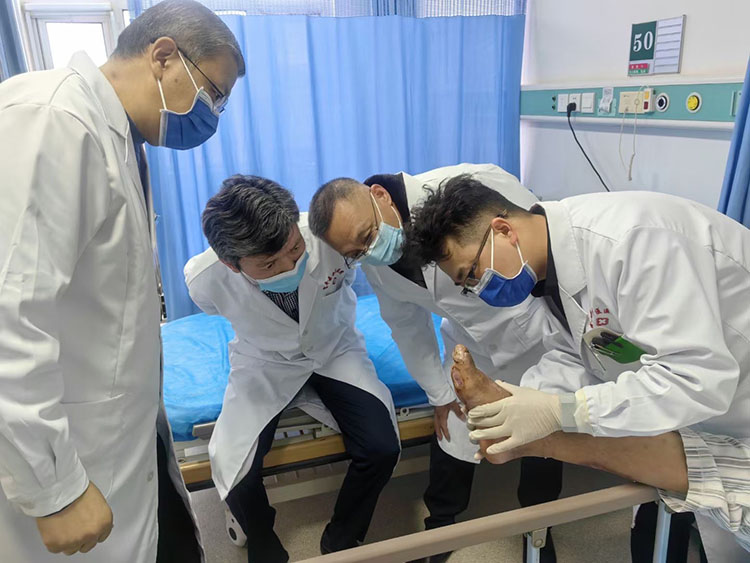 2023年2月18日,再生醫(yī)學(xué)知名專家、《中國燒傷創(chuàng)瘍雜志》常務(wù)編委趙瑞慶主任應(yīng)邀到長治市第二人民醫(yī)院(三甲)規(guī)范運(yùn)用再生醫(yī)療技術(shù)會(huì)診4例創(chuàng)面患者,其中一例糖足,一例潰瘍創(chuàng)面,一例動(dòng)脈硬化創(chuàng)面,一例骨折創(chuàng)面,并為劉主任解答了這幾類創(chuàng)面的關(guān)鍵處理方法。