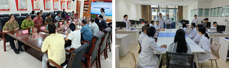 8月27日,訪(fǎng)問(wèn)團(tuán)再次前往燒傷創(chuàng)瘍科病房,在王鄉(xiāng)寧主任的帶領(lǐng)下對(duì)患者進(jìn)行查房。通過(guò)床旁講解,訪(fǎng)問(wèn)團(tuán)了解到了進(jìn)行多技術(shù)聯(lián)合治療的最佳時(shí)機(jī)以及輔助治療對(duì)促進(jìn)創(chuàng)面愈合的良好效果。病房參觀結(jié)束后,雙方醫(yī)生圍坐學(xué)習(xí)室,來(lái)自RSUD Dr. Soetomo醫(yī)院整形外科的Agus Santoso Budi主任及來(lái)自RSUP Dr. Sardjito醫(yī)院整形外科的Rianto Noviady Ramli主任分享了在印尼當(dāng)?shù)貞?yīng)用再生醫(yī)療技術(shù)治療燒傷的經(jīng)驗(yàn),通過(guò)與中方專(zhuān)家的交流,代表團(tuán)更加深入的了解到了如何在臨床中正確應(yīng)用該技術(shù)的治療原則。