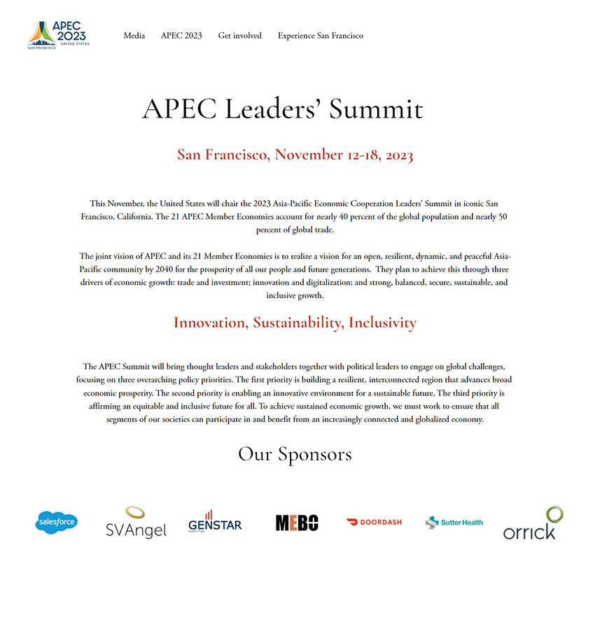 日前,亞太經(jīng)濟(jì)合作組織(Asia-Pacific Economic Cooperation, APEC)官網(wǎng)正式上線并發(fā)布亞太經(jīng)合組織領(lǐng)導(dǎo)人峰會相關(guān)信息。美寶國際作為重要合作伙伴列名官網(wǎng)。