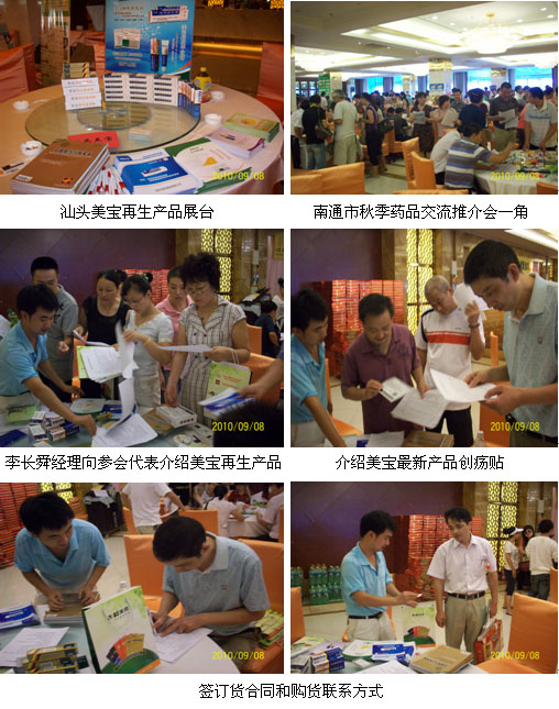 2010年9月8日,南通市秋季藥品展銷交流推介會(huì)在南通市水天堂大酒店拉開了帷幕,參加本次會(huì)議的廠家及藥業(yè)公司有200余家,其中汕頭美寶制藥有限公司住南通市辦事處工作人員也參加了本次推介會(huì),在會(huì)議結(jié)束前,訂貨美寶濕潤(rùn)燒傷膏2件、20g曲咪新5件、創(chuàng)瘍貼50貼。藥品展銷交流推介會(huì)期間,汕頭美寶制藥有限公司李長(zhǎng)舜經(jīng)理和專家組杜福勤主任深入展臺(tái)前與客戶代表親切交談,詳細(xì)地介紹人體再生復(fù)原科學(xué)、再生醫(yī)療技術(shù)系列產(chǎn)品、臨床滿意療效等,傾聽客戶代表的意見與建議,商談進(jìn)一步合作事宜,并協(xié)調(diào)解決客戶的困難與終端關(guān)系。會(huì)議超過預(yù)期效果,取得圓滿成功。