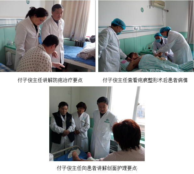 3月12日、13日,付子俊繼續(xù)參與兩科病區(qū)的常規(guī)治療工作,連續(xù)觀察和指導(dǎo)多位重度褥瘡和糖尿病足潰瘍及燒傷患者的創(chuàng)面治療,并對(duì)燒傷科近期完成的幾例疤痕整形手術(shù)進(jìn)行評(píng)估,他認(rèn)為手術(shù)效果很好,對(duì)術(shù)后的創(chuàng)面愈合、功能鍛煉,他提出了一些具體要求,并叮囑家屬們應(yīng)做到的日常護(hù)理要點(diǎn),患者家屬們認(rèn)真聽取了付主任的建議,并對(duì)美寶集團(tuán)燒傷創(chuàng)瘍專家的到來深表感謝。