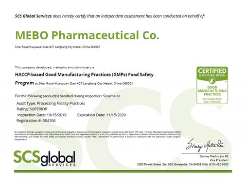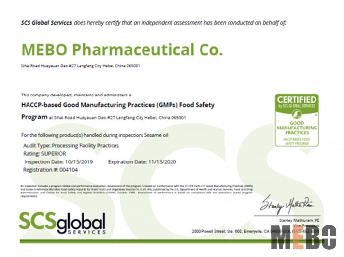 審核的結(jié)果再一次證明,廊坊美寶的芝麻油產(chǎn)品,優(yōu)質(zhì)、安全,值得信賴。廊坊美寶具備了符合國際標(biāo)準(zhǔn)的硬件水平,與世界先進水平接軌的質(zhì)量管理水平和達(dá)到國際認(rèn)可的產(chǎn)品質(zhì)量,廊坊美寶制藥有限責(zé)任公司將在國際化的道路上繼續(xù)奮勇前進。