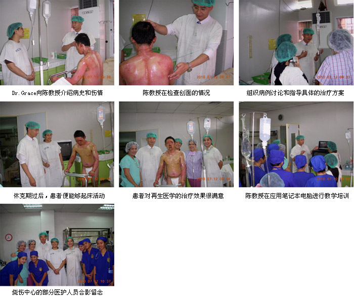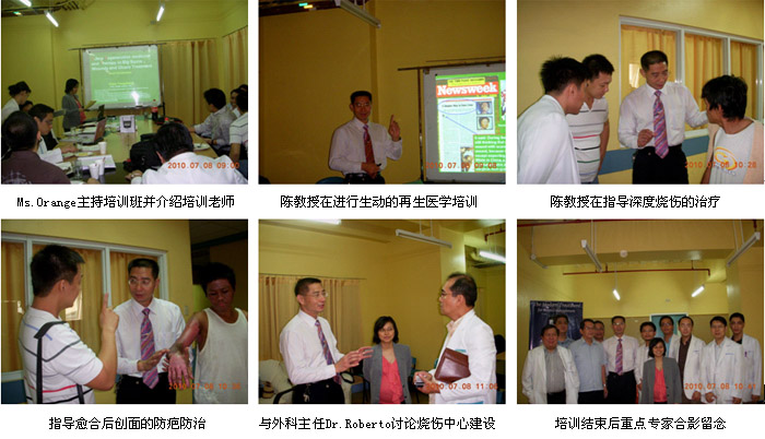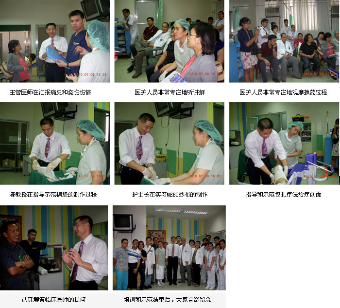 2010年7月7日首家再生醫(yī)學(xué)燒傷創(chuàng)瘍治療中心在菲律賓首都馬尼拉正式掛牌成立后,來(lái)自中國(guó)北京MEBO燒傷創(chuàng)瘍研究所國(guó)際部的徐沖與菲律賓方面負(fù)責(zé)再生醫(yī)學(xué)技術(shù)推廣的Ms.Orange進(jìn)行了認(rèn)真的討論、組織和策劃,在接下來(lái)的5天時(shí)間里,成功展開了一系列的、方式靈活的醫(yī)療開發(fā)和維護(hù)工作。期間,中國(guó)燒傷創(chuàng)瘍科技中心臨床部主任、北京榮祥再生醫(yī)學(xué)研究所副所長(zhǎng)、北京中西醫(yī)結(jié)合學(xué)會(huì)燒傷專業(yè)委員會(huì)副主任委員陳永翀教授,先后應(yīng)邀到4家政府醫(yī)院,進(jìn)行燒傷再生醫(yī)學(xué)技術(shù)培訓(xùn)、學(xué)術(shù)交流,以及到燒傷中心會(huì)診指導(dǎo)大面積燒傷病例的治療,受到醫(yī)院、醫(yī)師、護(hù)士和患者的歡迎。在短短的5天時(shí)間里,舉辦了院級(jí)培訓(xùn)班3期,燒傷中心內(nèi)部培訓(xùn)2期,重點(diǎn)專家學(xué)術(shù)交流3次,培訓(xùn)了燒傷、整形、普通外科、骨科的醫(yī)師和護(hù)士59名,對(duì) 2家重點(diǎn)老醫(yī)院進(jìn)行了有效的維護(hù)和促進(jìn),成功新開發(fā)了2家政府教學(xué)醫(yī)院,會(huì)診、指導(dǎo)特重度燒傷1例,重度燒傷2例,疤痕1例,實(shí)現(xiàn)了較好的醫(yī)療開發(fā)、維護(hù)和進(jìn)一步規(guī)范臨床技術(shù)的效果。