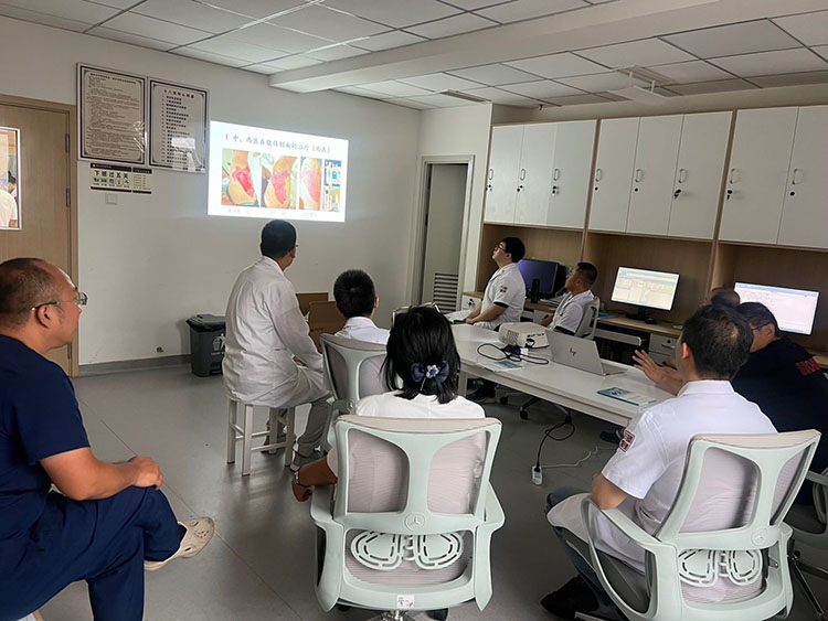 8月8日,中國中醫(yī)藥高等教育學會臨床教育研究會肛腸分會常務(wù)理事、北京中西醫(yī)結(jié)合學會燒傷專業(yè)委員會副主任委員、北京中醫(yī)藥學會肛腸專業(yè)委員會委員、《中國燒傷創(chuàng)瘍雜志》常務(wù)編委張勇教授,應(yīng)邀來到大連醫(yī)科大學附屬第二醫(yī)院(星海院區(qū))進行再生醫(yī)療技術(shù)講座,在梁海東主任帶領(lǐng)下,醫(yī)護人員積極參與認真聽課,張教授重點介紹再生醫(yī)療技術(shù)在急慢性創(chuàng)面修復(fù)中的優(yōu)勢,并通過豐富的臨床案例闡述了換藥流程中的操作要點,參會人員更加清晰的了解到了該技術(shù)在臨床換藥過程中的基本原則及在創(chuàng)面修復(fù)中的應(yīng)用價值?;迎h(huán)節(jié)中,與會人員就實際應(yīng)用中可能遇到的問題踴躍提問,現(xiàn)場氛圍熱烈,張教授并再次強調(diào)規(guī)范用藥在臨床中的重要意義。