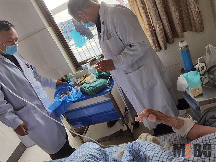 2021年3月31日,聊城市第三人民醫(yī)院的普外科關(guān)中正博士以及牛新芳護(hù)士長(zhǎng),聯(lián)合中國(guó)紅十字基金會(huì)徐榮祥再生生命公益基金來(lái)到聊城地區(qū)進(jìn)行公益義診,利用再生醫(yī)療技術(shù)及其配套產(chǎn)品濕潤(rùn)燒傷膏為患者清創(chuàng)、換藥。一行人來(lái)到聊城市東昌府區(qū)姚堤口村,到曾在聊城市第三人民醫(yī)院救治的一位長(zhǎng)期臥床90歲老人的家中,這位患者在住院期間,關(guān)中正博士運(yùn)用再生醫(yī)療技術(shù)及濕潤(rùn)燒傷膏為其進(jìn)行治療,后期并為其縫合。