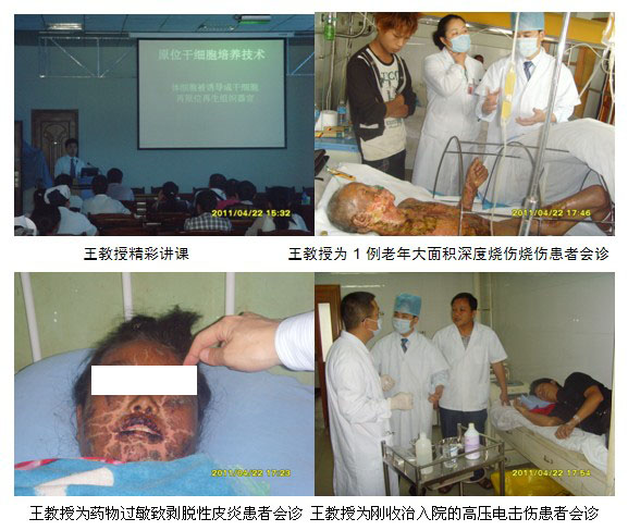 在學(xué)術(shù)講座中王教授首先向與會(huì)醫(yī)護(hù)人員介紹了我國著名生命科學(xué)家、醫(yī)學(xué)家徐榮祥教授在人體再生復(fù)原科學(xué)領(lǐng)域取得的實(shí)驗(yàn)及臨床研究最新進(jìn)展,在2010年年底公布的“人體生命延續(xù)之謎(二)——線粒體主導(dǎo)日常生命”,破解了“精、氣、神、力”旺盛與人體啟動(dòng)了再生生命程序有關(guān),與細(xì)胞內(nèi)各主要細(xì)胞器功能的發(fā)揮有關(guān),并進(jìn)一步證實(shí)了一個(gè)生命體可以同時(shí)具有“基本生命”和“再生生命”等,然后結(jié)合了大量的臨床病例圖片,主要針對(duì)不同深度的燒傷創(chuàng)面及各類難愈性創(chuàng)傷、潰瘍創(chuàng)面的規(guī)范化處理方法與技巧、注意事項(xiàng)等進(jìn)行了細(xì)致地講解,并用向?qū)W員展示了糖尿病足創(chuàng)面規(guī)范處理錄像資料,再生醫(yī)療技術(shù)神奇的療效博得了在場(chǎng)醫(yī)務(wù)人員的熱烈掌聲。