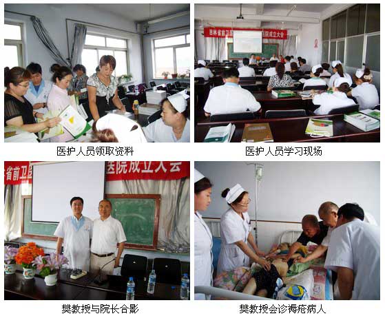 2011年7月8日,中國中西醫(yī)結(jié)合學(xué)會(huì)燒傷專業(yè)委員會(huì)的樊兆宗教授,對(duì)輝南縣第二人民醫(yī)院的醫(yī)護(hù)人員進(jìn)行再生醫(yī)療技術(shù)的推廣普及工作。這次的培訓(xùn)受到了該院主管院長苗輝和負(fù)責(zé)外科的樊守羅院長的重視,在會(huì)前苗院長和樊院長進(jìn)行了技術(shù)交流。樊教授通過大量的圖片闡述了再生醫(yī)療技術(shù)多年來在臨床上取得的成效,并對(duì)會(huì)前樊院長提出的難愈創(chuàng)面的處理做了重點(diǎn)的講解。學(xué)員們認(rèn)真聽課,并記錄筆記。