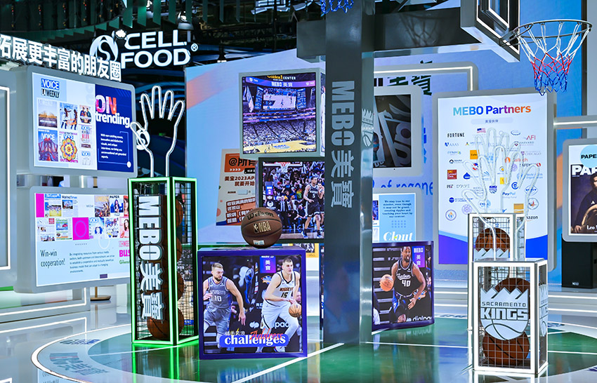 特別引人矚目的是,美寶展臺上以紫色為主色調(diào)的縮小版籃球場,以及豐富的籃球隊(duì)周邊元素,這是美寶集團(tuán)與薩克拉門托國王隊(duì)在上海進(jìn)博會(huì)上的一場聯(lián)合秀。