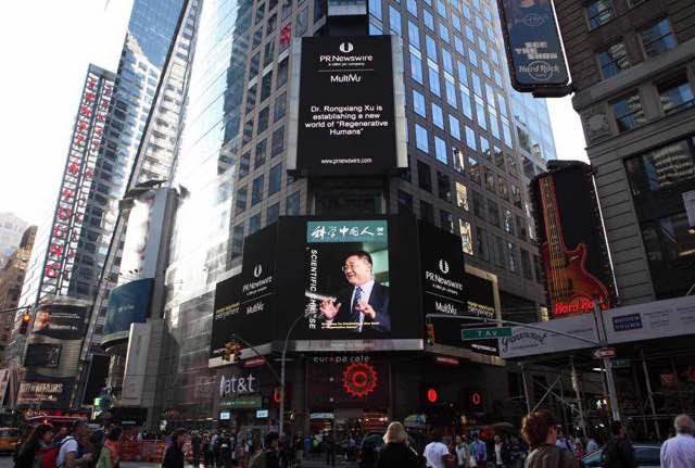 紐約時(shí)代廣場大屏幕報(bào)道徐榮祥科學(xué)中國人雜志封面照巨照