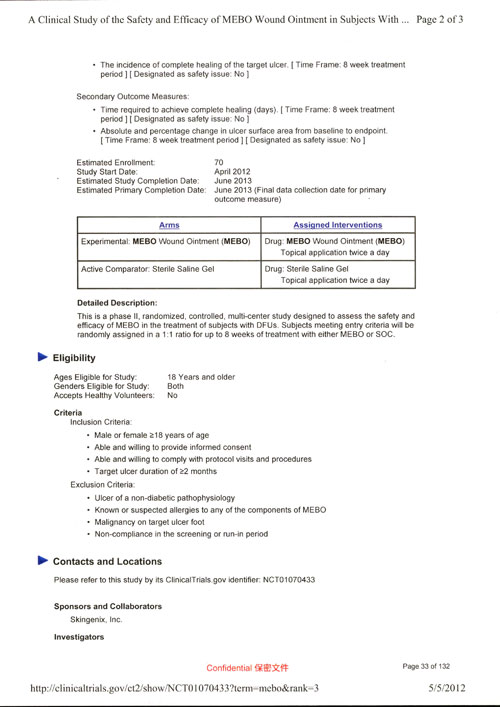 據(jù)悉,面對(duì)糖尿病潰瘍這種高發(fā)病率、高截肢率、高病死率及高復(fù)發(fā)率的無藥可醫(yī)的疾病,我國政府SFDA與美國政府FDA近期幾乎同一時(shí)間批準(zhǔn)原位再生皮膚技術(shù)的專用藥品美寶濕潤燒傷膏(MEBO)作為糖尿病潰瘍專用藥進(jìn)行臨床研究。這也是美國FDA批準(zhǔn)的第一個(gè)全植物營養(yǎng)成分的藥品臨床研究。
