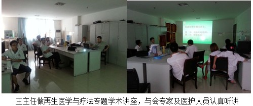 講座結(jié)束后,該科室主任及專家、醫(yī)護人員和王主任一起進一步討論了再生醫(yī)學(xué)醫(yī)療技術(shù)的治療要點,特別是再生復(fù)原療法在褥瘡、骨科慢性潰瘍、難愈合創(chuàng)面、糖尿病足、斷指再生等創(chuàng)面的治療要點。