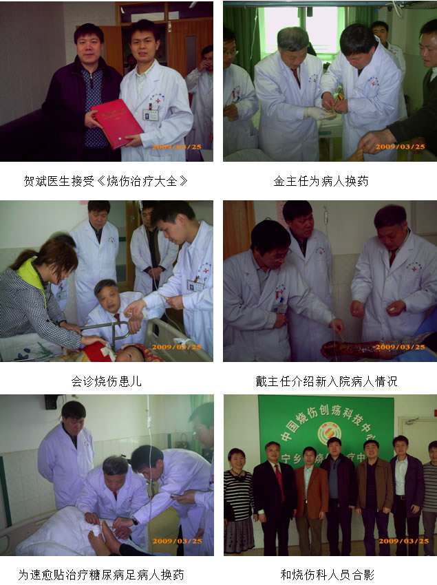 陽(yáng)春三月,春回大地,萬(wàn)物復(fù)蘇,三湘大地萬(wàn)象更新。3月25日金黨軍主任走訪了寧鄉(xiāng)縣人民醫(yī)院燒傷科,并對(duì)基層醫(yī)院如何規(guī)范應(yīng)用燒傷皮膚原位再生復(fù)原技術(shù)進(jìn)行座談,而后去病房查看病人。首先金主任對(duì)寧鄉(xiāng)縣人民醫(yī)院燒傷科規(guī)范應(yīng)用原位再生復(fù)原技術(shù)所取得的進(jìn)展給與了肯定,并希望今后要發(fā)揮臨床培訓(xùn)基地醫(yī)院的龍頭作用,以點(diǎn)帶面做好鄉(xiāng)鎮(zhèn)醫(yī)院、社區(qū)服務(wù)中心的再生醫(yī)療技術(shù)普及推廣工作。在臨床查房期間金主任通過(guò)示范換藥,用大量臨床資料展示了燒傷皮膚原位再生復(fù)原技術(shù)在不同深度燒傷創(chuàng)面的處理方法,及皮膚再生醫(yī)療技術(shù)在創(chuàng)傷、褥瘡、糖尿病足等獨(dú)特的治療效果。查房后金主任就原位再生復(fù)原新技術(shù)與該院戴主任和臨床醫(yī)生進(jìn)行了廣泛而深入的交流,希望通過(guò)該項(xiàng)新技術(shù)的交流,提高該院的燒傷、創(chuàng)傷、創(chuàng)瘍、糖尿病足的治療水平,給當(dāng)?shù)匕傩諑?lái)實(shí)實(shí)在在的好處,福祉更多患者。