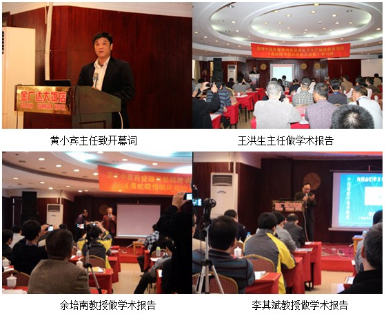 在本次學(xué)術(shù)會(huì)議上,余培南教授以“銀環(huán)蛇咬傷呼吸停止的搶救”,李其斌教授以“毒蛇咬傷中毒機(jī)理及其救治”,福建省人民醫(yī)院重癥監(jiān)護(hù)中心鄭文賀副教授以“毒蛇咬傷重癥患者的器官支持”,黃小賓主任以“蛇傷火毒型論治、黃守林治療蛇傷經(jīng)驗(yàn)節(jié)選”為題先后做了專題報(bào)告,《蛇志》雜志執(zhí)行副主編藍(lán)海副教授也作了專題報(bào)告,最后,大會(huì)完成預(yù)定議程后在團(tuán)結(jié)、和諧、祥和的氣氛中結(jié)束。