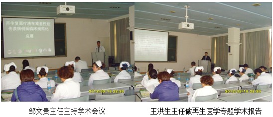 2012年3月20日下午應(yīng)該醫(yī)院邀請,中國中西醫(yī)結(jié)合學會燒傷專業(yè)委員會常委兼秘書、《中國燒傷創(chuàng)瘍雜志》副總編輯、北京美寶燒傷創(chuàng)瘍研究所副所長、第二臨床研究部主任王洪生研究員應(yīng)邀來到該院做“再生復(fù)原療法在深度燒傷及難愈性創(chuàng)面治療新進展”專題學術(shù)講座。該醫(yī)院燒傷整形科主任鄒文貴副主任醫(yī)師主持了學術(shù)會議,在學術(shù)講座中,王主任首先向與會的專家介紹了著名生命科學家、醫(yī)學家、人體再生復(fù)原科學的創(chuàng)立者、再生復(fù)原療法的發(fā)明人徐榮祥教授近年來在再生醫(yī)學領(lǐng)域所取得的重大實驗及臨床研究成果,而后王主任結(jié)合了大量的臨床病例圖片及錄像資料,重點講述了原位再生復(fù)原技術(shù)的臨床操作規(guī)范,原位再生復(fù)原技術(shù)在創(chuàng)傷,褥瘡,潰瘍等多學科的應(yīng)用,并從燒傷創(chuàng)面治療難題的再生復(fù)原機理、解決深度創(chuàng)面的愈合難題機理、創(chuàng)傷創(chuàng)面治療難題再生復(fù)原機理、糖尿病潰瘍的再生復(fù)原機理、組織肢體缺損的復(fù)原機理皮膚器官原位復(fù)原再生的機理等幾個方面以大量的病例對人體器官原位再生復(fù)原技術(shù)進行了深入淺出的講解。會后和科室主任進行了一系列的交流??浦魅握f再生醫(yī)療技術(shù)操作簡單方便,治療費用小,適合各醫(yī)院開展,他們會把所學的用于臨床中為病人造福。