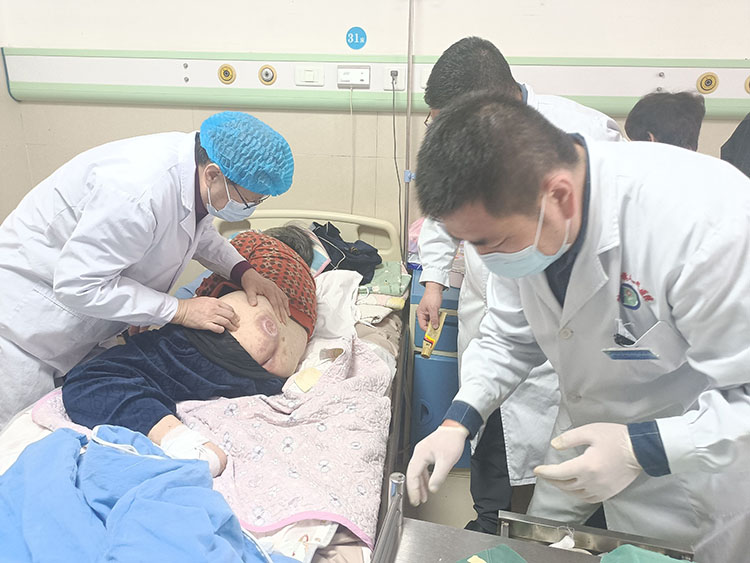 4月4日,享受國務(wù)院特殊津貼專家、中國中西醫(yī)結(jié)合燒傷專業(yè)委員會(huì)顧問、中國研究型醫(yī)院學(xué)會(huì)創(chuàng)面防治與損傷組織修復(fù)專業(yè)委員會(huì)委員、中國中西醫(yī)結(jié)合學(xué)會(huì)再生醫(yī)療技術(shù)委員會(huì)創(chuàng)瘍學(xué)組首席專家、《中國燒傷創(chuàng)瘍雜志》常務(wù)編委、成都市郫都區(qū)人民醫(yī)院燒傷創(chuàng)瘍科學(xué)術(shù)帶頭人付子俊教授應(yīng)邀到江津區(qū)中醫(yī)院會(huì)診幾例壓瘡病人,并給科室醫(yī)生護(hù)士講解再生醫(yī)療技術(shù)規(guī)范及應(yīng)用,隨后親自給病人換藥并指導(dǎo),獲得病人家屬科室主任護(hù)士長一致好評(píng),大家表示受益匪淺。