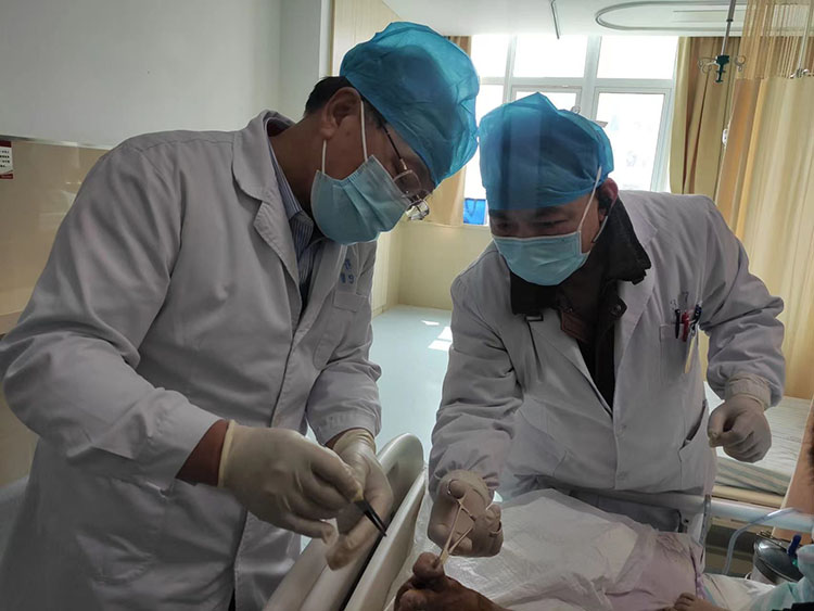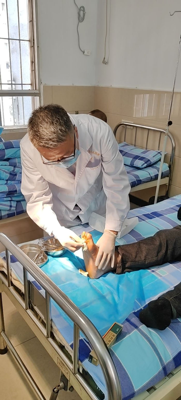 4月6日,應(yīng)科左后旗醫(yī)院邀請(qǐng),北京宣武中醫(yī)院張勇主任來到在美麗的科爾沁大草原,在醫(yī)院骨外科進(jìn)行再生醫(yī)療技術(shù)學(xué)術(shù)交流活動(dòng)。學(xué)術(shù)交流得到了醫(yī)院領(lǐng)導(dǎo)班子大力支持,會(huì)議由主管院長張愛民院長主持??剖抑魅?、醫(yī)生對(duì)再生醫(yī)療技術(shù)臨床療效給予高度認(rèn)可和評(píng)價(jià)!學(xué)術(shù)交流后,張勇主任和醫(yī)院領(lǐng)導(dǎo)一起到科室,為幾例慢創(chuàng)病人會(huì)診和指導(dǎo),張主任親自操作示范換藥,講解規(guī)范換藥細(xì)節(jié),旨在提升慢創(chuàng)救治能力,充分發(fā)揮再生醫(yī)療技術(shù)創(chuàng)面修復(fù)的示范引領(lǐng)作用,最大限度降低慢創(chuàng)患者的死亡率和致殘率,確保慢性患者得到高效的救治。