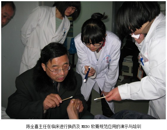 陳全喜主任講述了人體再生復(fù)原科學(xué)皮膚原位再生醫(yī)療技術(shù)的創(chuàng)立者,中國(guó)生命科學(xué)家徐榮祥教授;講述了皮膚原位再生醫(yī)療技術(shù)的原理,如何讓創(chuàng)面立體式暴露在一個(gè)生理濕潤(rùn)環(huán)境內(nèi),自動(dòng)液化排除壞死皮膚,保護(hù)殘存皮膚細(xì)胞再生復(fù)原創(chuàng)面;講述了MEBT/MEBO在皮膚原位再生醫(yī)療技術(shù)指導(dǎo)配合下,如何實(shí)現(xiàn)皮膚原位再生修復(fù),如何使使致病菌變異,降低毒力,如何保護(hù)細(xì)胞,增強(qiáng)細(xì)胞膜張力,并使幾乎瀕臨壞死的細(xì)胞向具有生命力的正常細(xì)胞轉(zhuǎn)化,如何通過(guò)再生表皮干細(xì)胞作用使脂肪組織中的殘存上皮組織及血管叢和纖維組織重新再生皮膚,減少癲痕愈合和增強(qiáng)創(chuàng)面自愈能力。